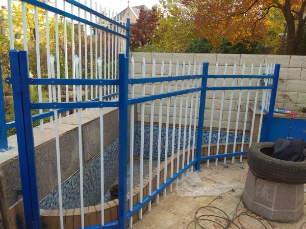 下面的照片是南京仙林一個(gè)別墅區(qū)的私家庭院四周安裝使用的鋅鋼護(hù)欄圍欄。客戶(hù)選用的三橫桿鋅鋼護(hù)欄,立柱和橫桿都是噴塑寶藍(lán)色,豎桿選擇的是白色。這批鋅鋼護(hù)欄的立柱采用膨脹螺栓于地面連接固定。